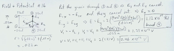 E = 6 x 109 + 1.6 x 1010 = 2.22 x 1010 V